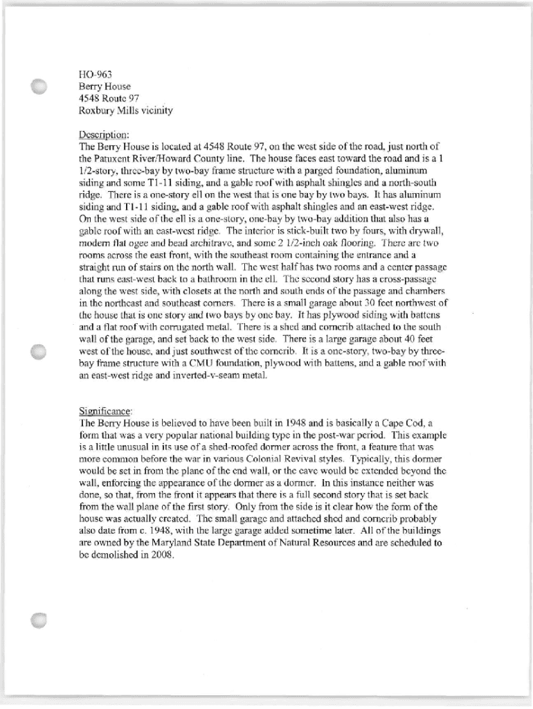 Get the free HO-963 Berry House 4548 Route 97 Roxbury Mills vicinity Description
