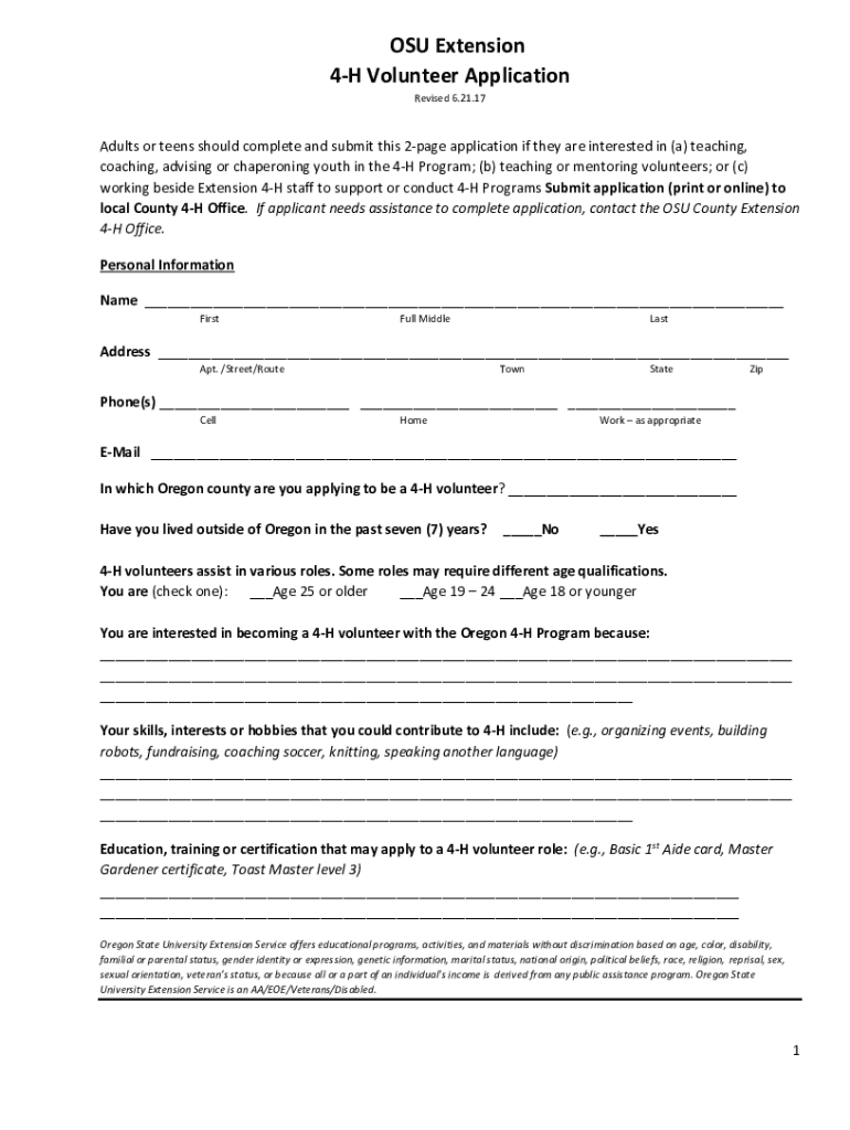Get the free OSU Extension 4-H Volunteer Application - extension oregonstate