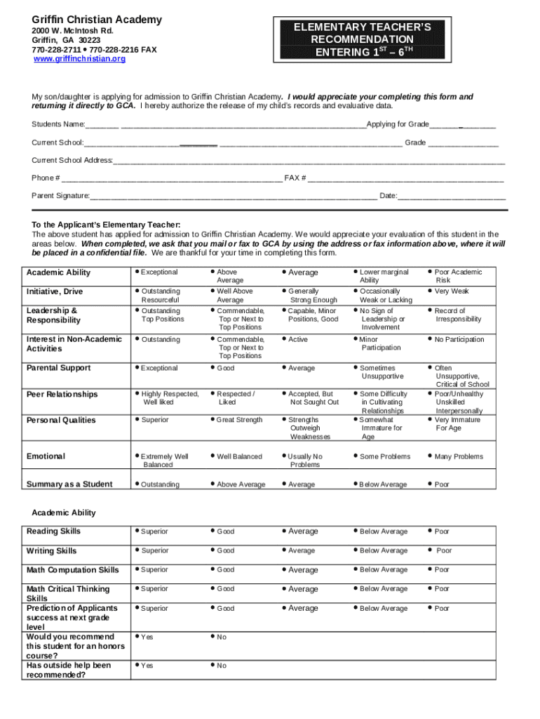 Instructions for the form Building Excellence from the Inside Out - Griffin Christian School