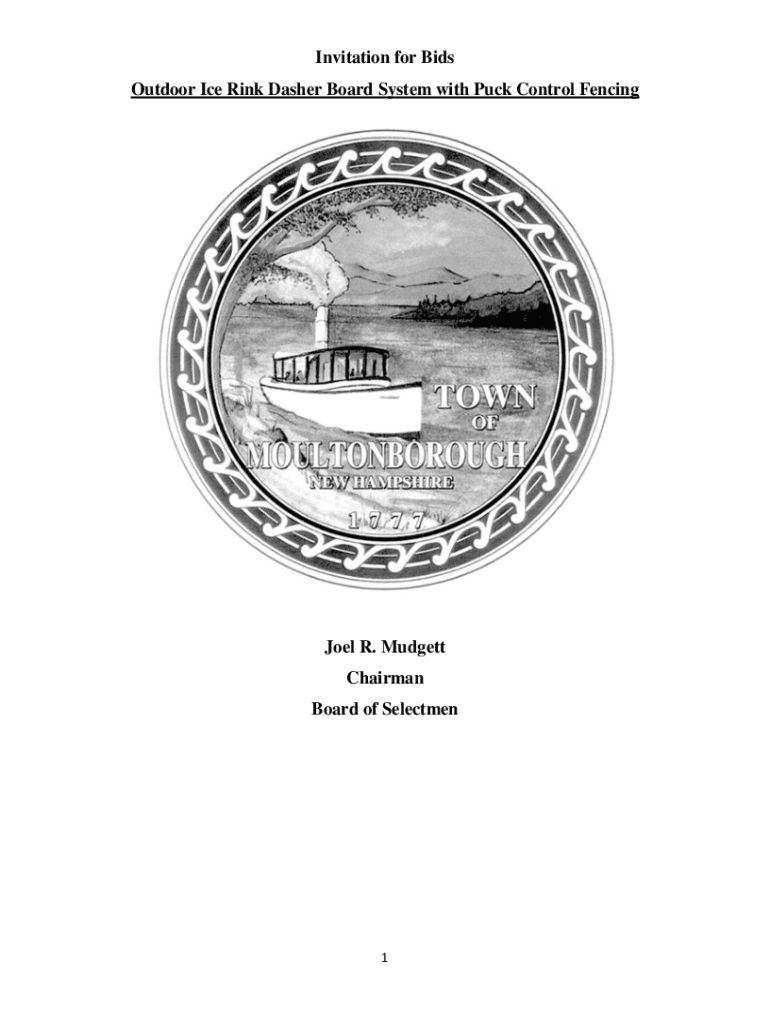 Invitation for Bids Outdoor Ice Rink Dasher Board System with Puck Control Fencing Moulton borough, NH August 29, 2019Joel R. Budget Chairman Board of Selectmen1Table of Contents Advertisement.3Scope