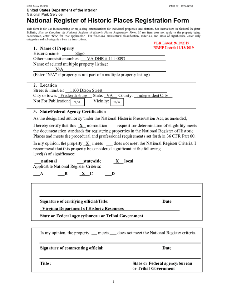 NPS Form 10900OMB No. 10240018United States Department of the Interior National Park ServiceNational Register of Historic Places Registration Form This form is for use in nominating or requesting