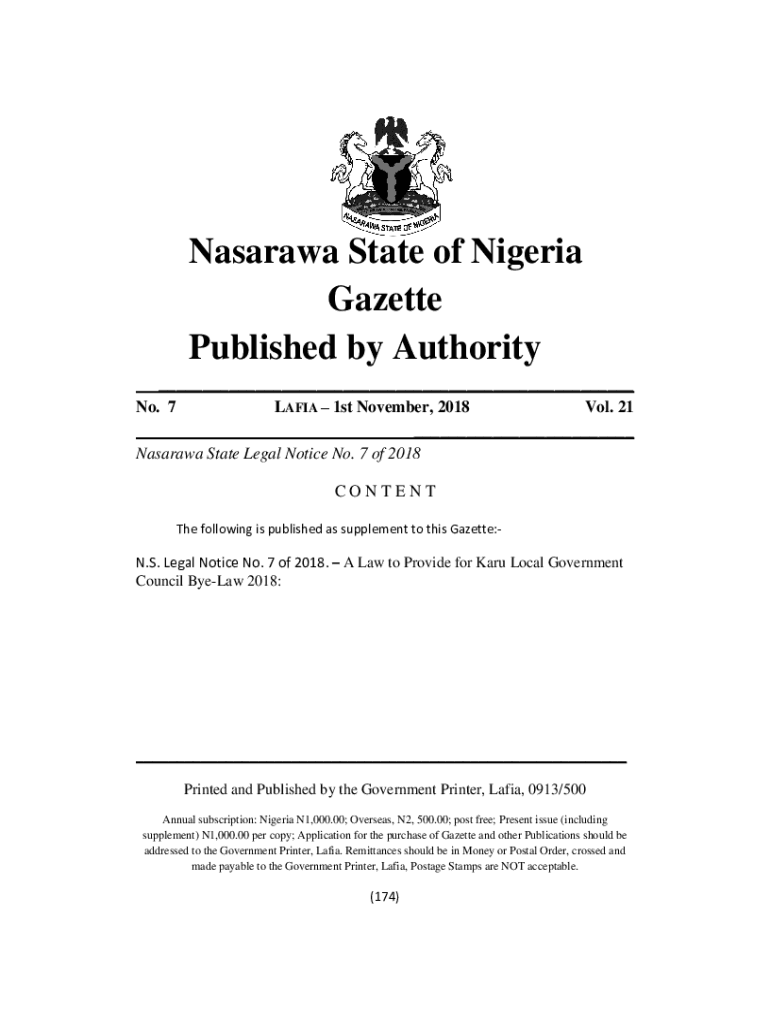 Get the free Nasarawa State of Nigeria Gazette Published by Authority - faolex fao