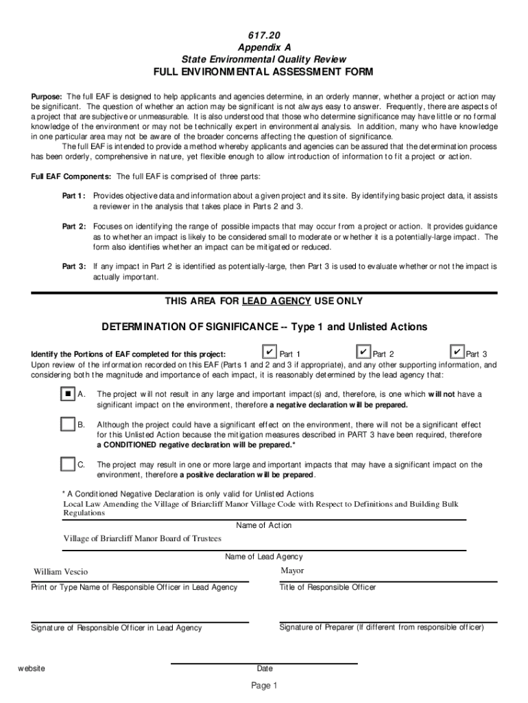 Village of Radcliff Manor Westchester County, LOCAL LAW AMENDING THE VILLAGE OF RADCLIFF MANOR ZONING CODES LONG ENVIRONMENTAL ASSESSMENT FORM PARTS 1, 2, AND 3LEAD AGENCY: William Velcro, Mayor Board