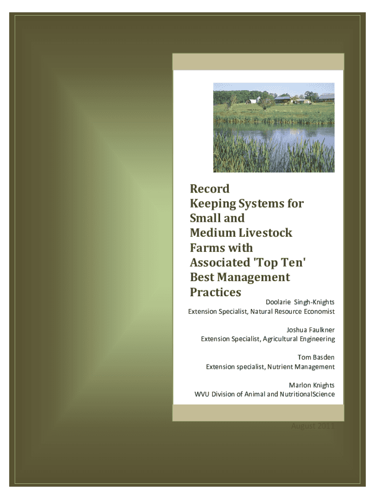 P age |0Record Keeping Systems for Small and Medium Livestock Farms with Associated \'Top Ten\' Best Management PracticesDoolarie SinghKnights Extension Specialist, Natural Resource Economist Joshua