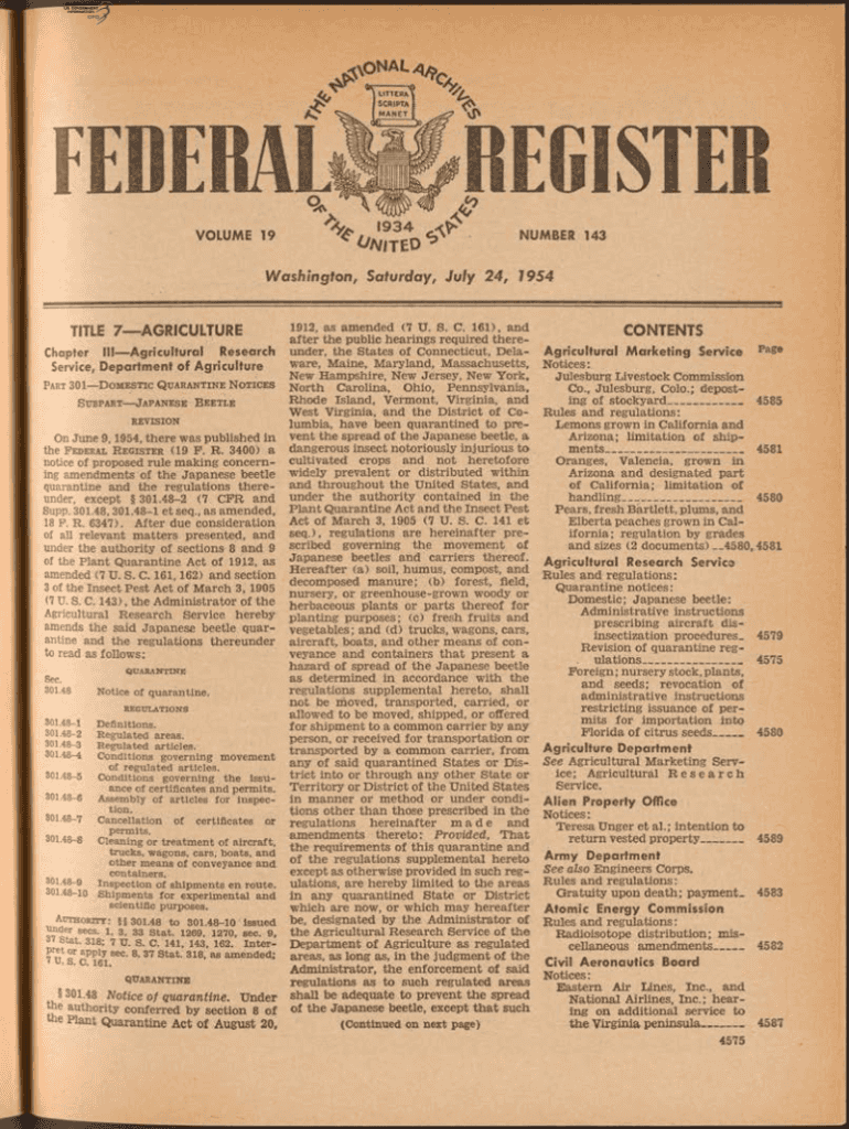^ only. C/UTTER\'7,SCRIPT I/ V1 an into 1\'9 3 4 ^ ^ A /IT E O NUMBER 143Washington, Saturday, July 24, 1954 1912, as amended (7 U. S. C. 161), and CONTENTS after the public hearings required there