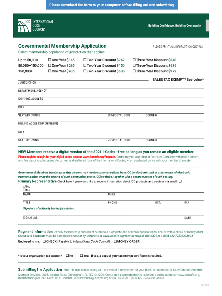 Please download the form to your computer before filling out and submitting. Building Confidence, Building CommunityGovernmental Membership ApplicationPLEASE PRINT ALL INFORMATION CLEARLY. Select