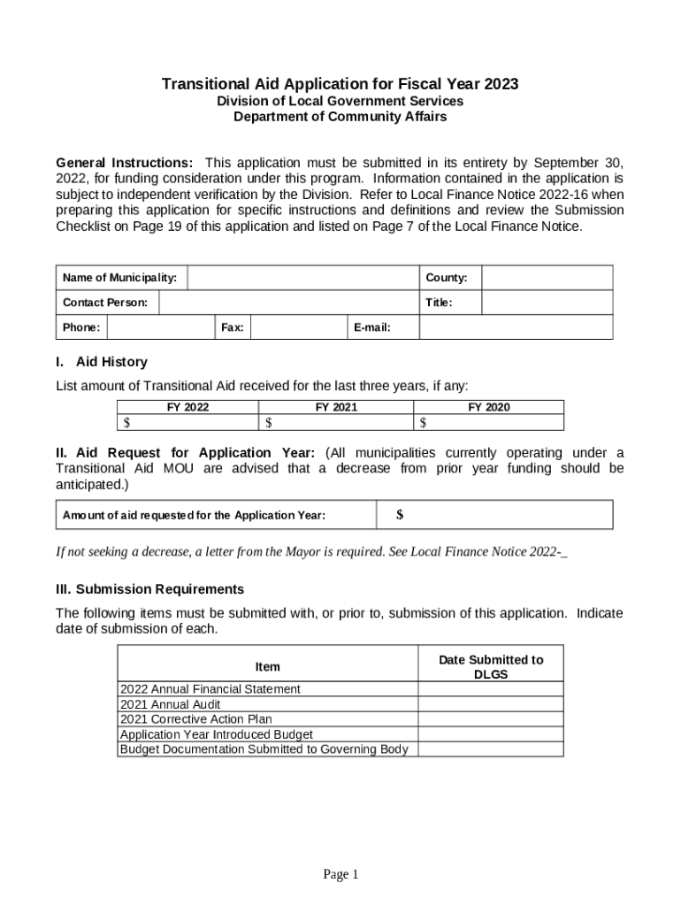 What is Transitional Aid Application for Fiscal Year 2023 - NJ.gov Form?
