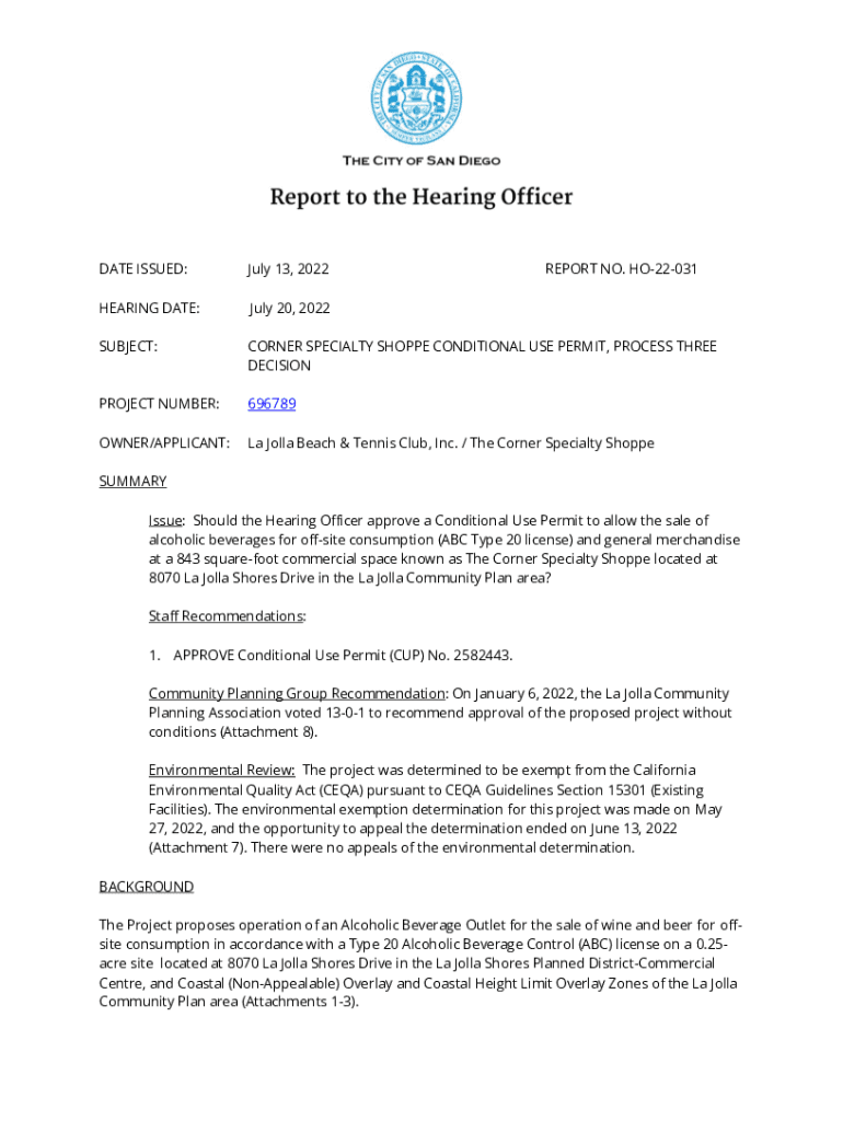 THE CITY OF SAN DIEGOReport to the Hearing Officer DATE ISSUED:July 13, 2022REPORT NO. HO22031HEARING DATE:July 20, 2022SUBJECT:CORNER SPECIALTY SHOPPE CONDITIONAL USE PERMIT, PROCESS THREE DECISIONPROJECT