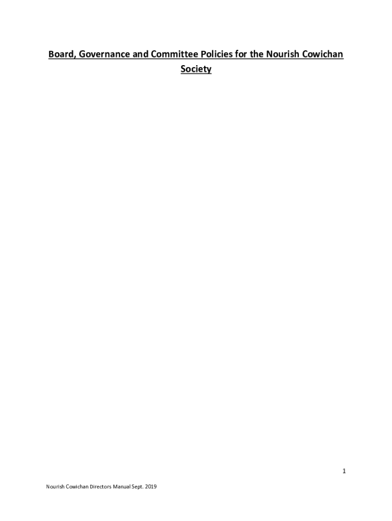 Get the free Board, Governance and Committee Policies for the Nourish Cowichan Society