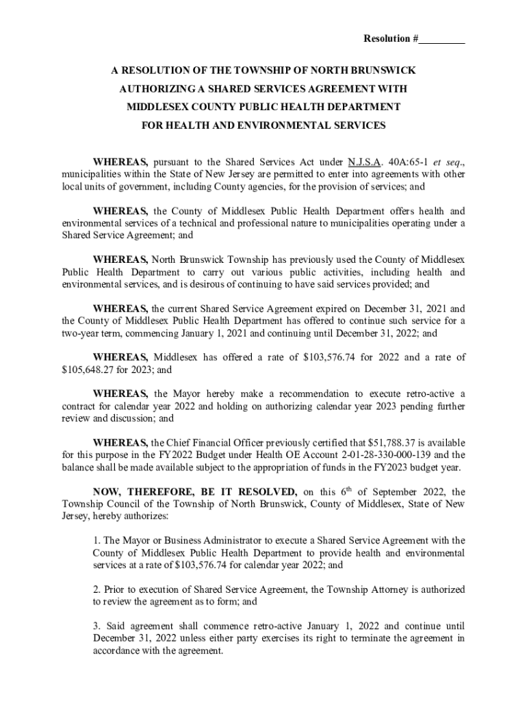 Get the free Resolution # A RESOLUTION OF THE TOWNSHIP OF NORTH BRUNSWICK ...
