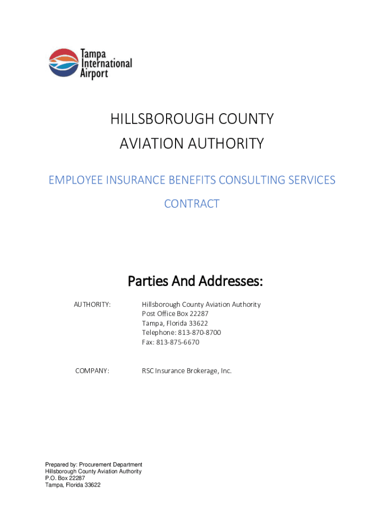 HILLSBOROUGH COUNTY AVIATION AUTHORITY EMPLOYEE INSURANCE BENEFITS CONSULTING SERVICES CONTRACTParties And Addresses: AUTHORITY:Hillsborough County Aviation Authority Post Office Box 22287 Tampa,