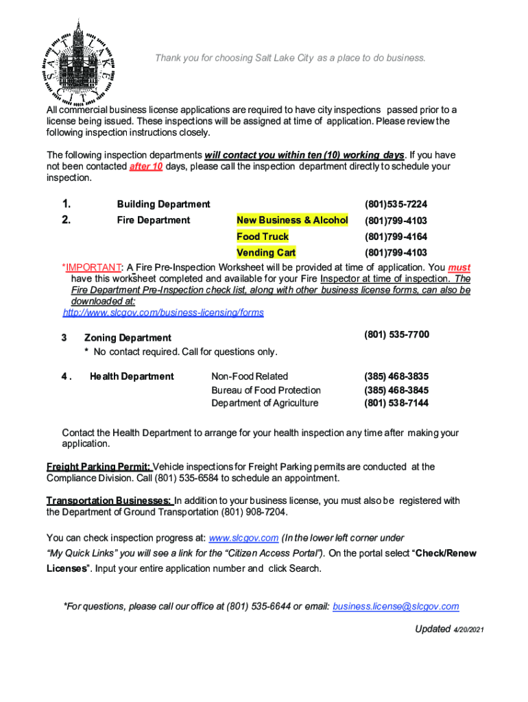 Thank you for choosing Salt Lake City as a place to do business. All commercial license applications are required to have city inspections passed prior to an i l business b license being issued. These