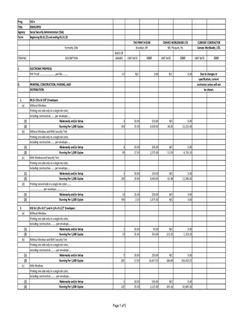 Pro. Title: Agency: Term:552s ENVELOPES Social Security Administration (SSA) Beginning 06.01.22 and ending 05.31.23 Formerly 234sITEM NO.DESCRIPTION.ELECTRONIC PREPRESS: PDF Proof. Per file.II.PRINTING,