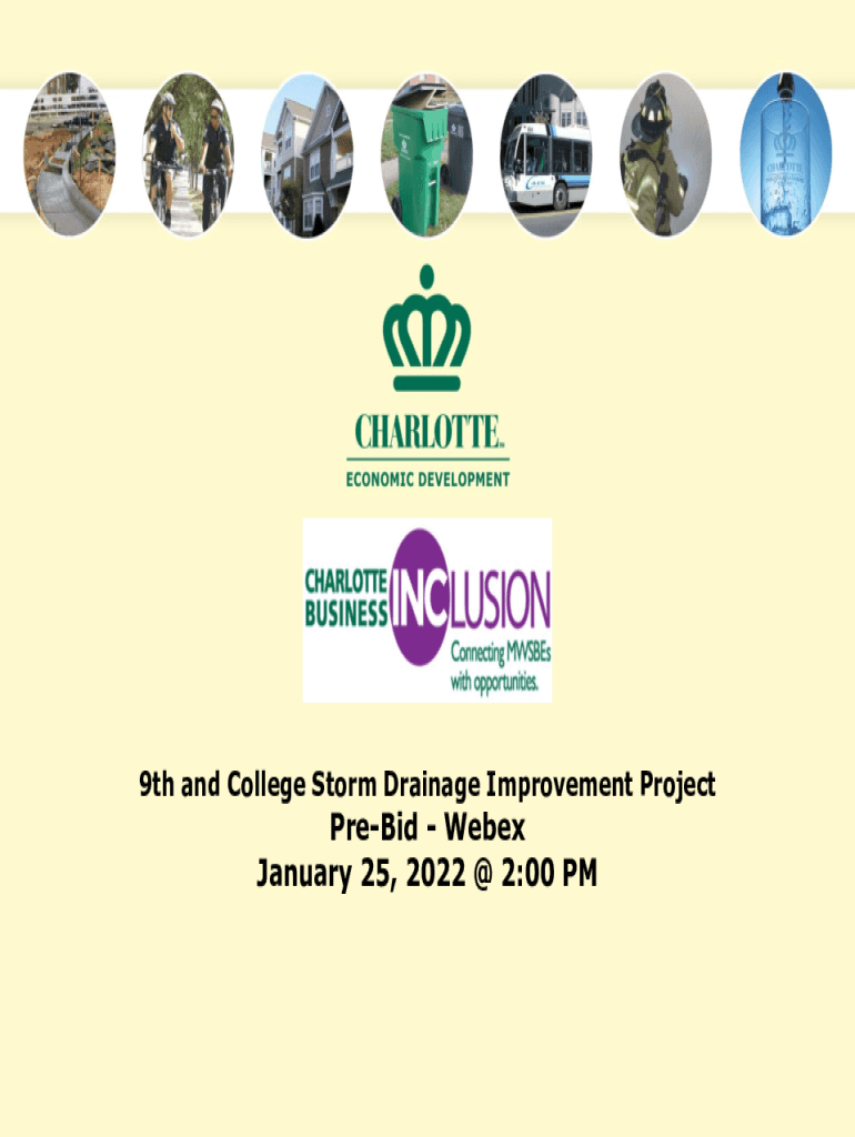 9th and College Storm Drainage Improvement ProjectPreBid Webex January 25, 2022 @ 2:00 What is Charlotte Business Inclusion? In 2013 the Charlotte City Council adopted the Charlotte Business Inclusion