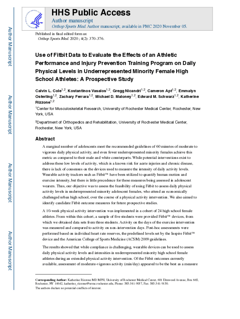 HHS Public Access Author manuscript Author ManuscriptOrthop Sports Med. Author manuscript; available in PMC 2020 November 05. Published in final edited form as: Northrop Sports Med. 2020 ; 4(2): 370376.