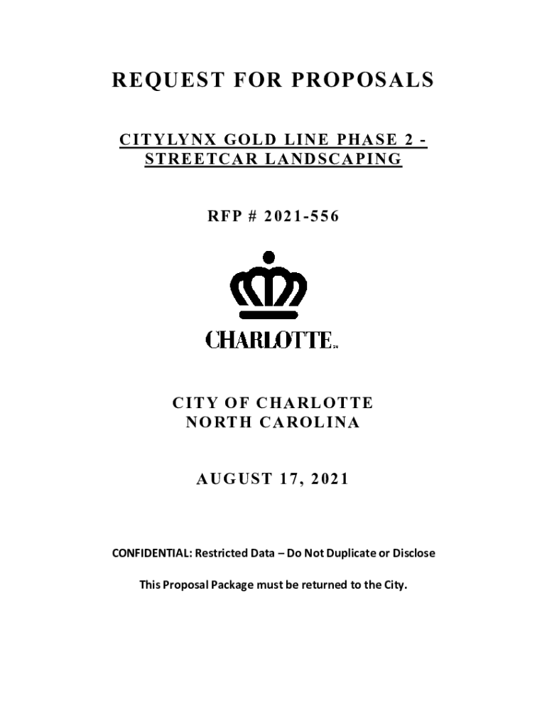 REQUEST FOR PROPOSALS C I T Y LY N × G O L D L I N E P H A S E 2 STREETCAR LANDSCAPING RFP # 2021556CITY OF CHARLOTTE N O RT H C A R O L I N A AUGUST 17, 2021CONFIDENTIAL:RestrictedDataDoNotDuplicateorDisclose