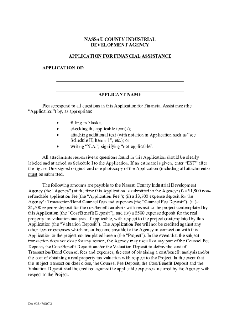 NY Nassau County Industrial Development Agency Application for Financial Assistance Form Versions