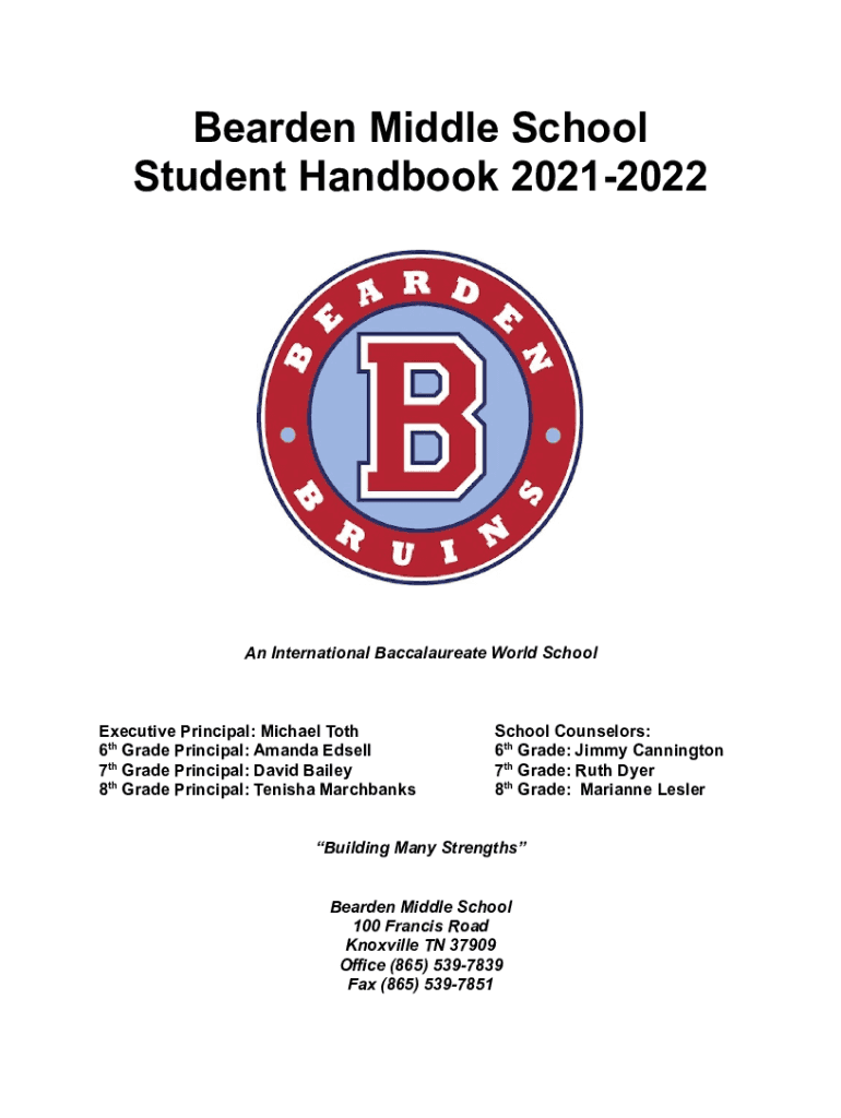 Bearded Middle School Student Handbook 20212022An International Baccalaureate World SchoolExecutive Principal: Michael Both 6th Grade Principal: Amanda Edsel 7th Grade Principal: David Bailey 8th