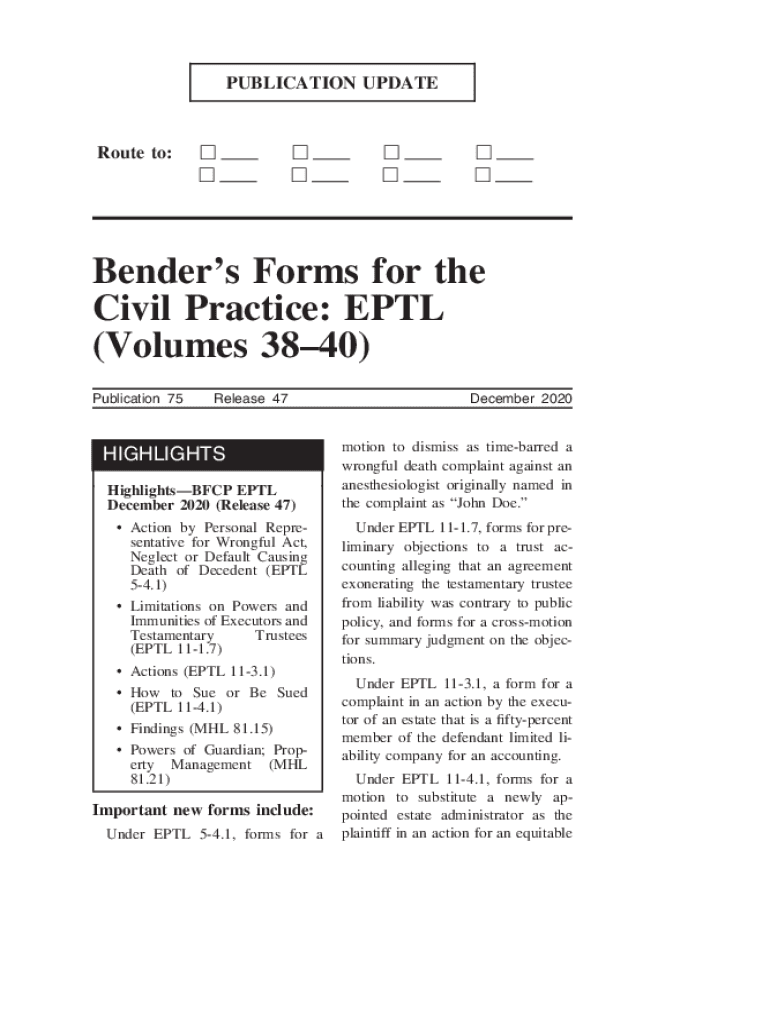 Get the free Bender's Forms for the Civil Practice: EPTL (Volumes 3840)