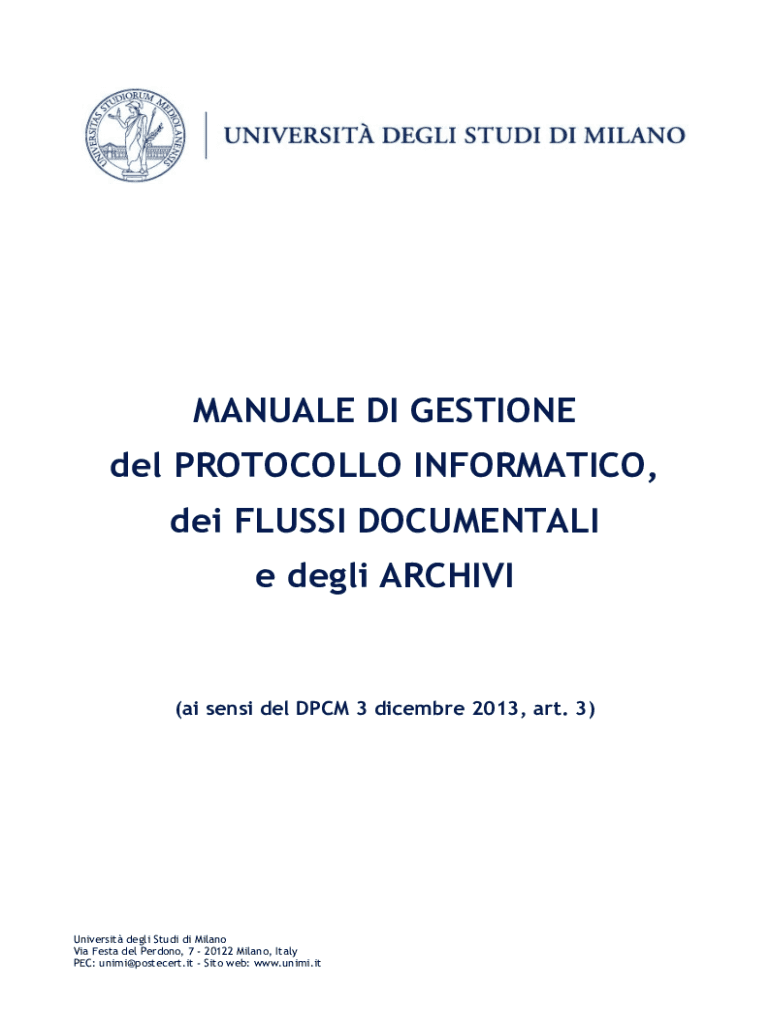 MANUAL EDI GEMSTONE Del PROTOCOL LO INFORMATICS, DEI FLU SSI DOCUMENTARY e deli ARCHIVE(AI sense Del PCM 3 December 2013, art. 3)University deli Studio di Milano Via Fest del Perdomo, 7 20122 Milano,