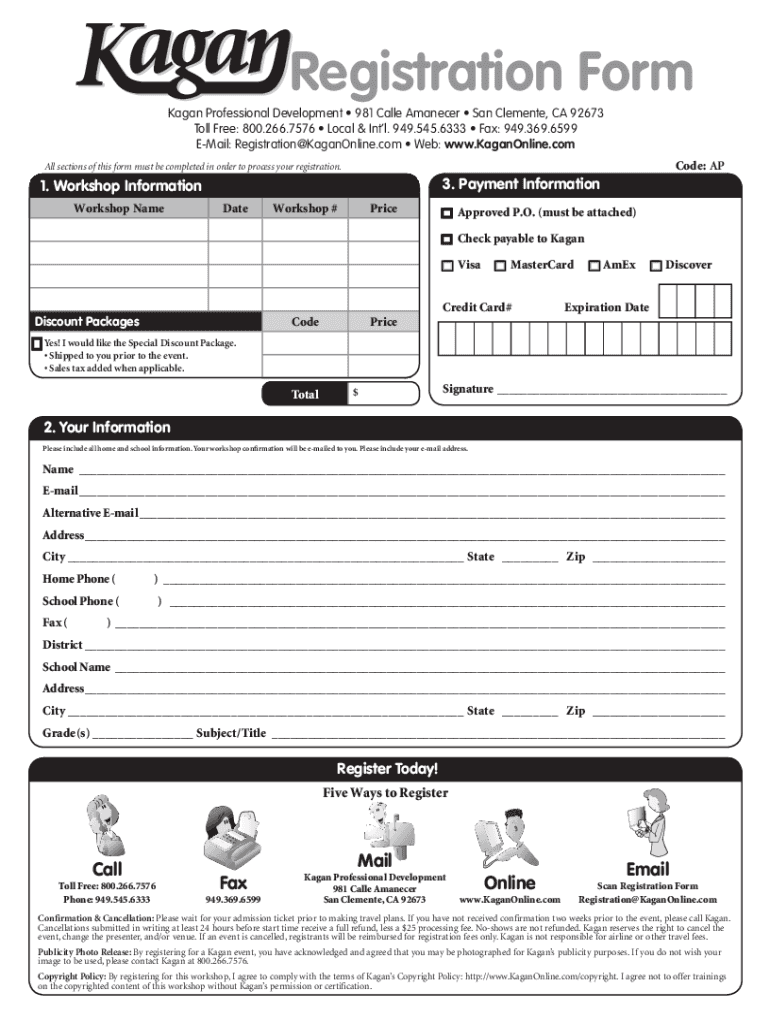 Get the free Kagan Workshop Downloadable Registration Forms - KaganOnline.com