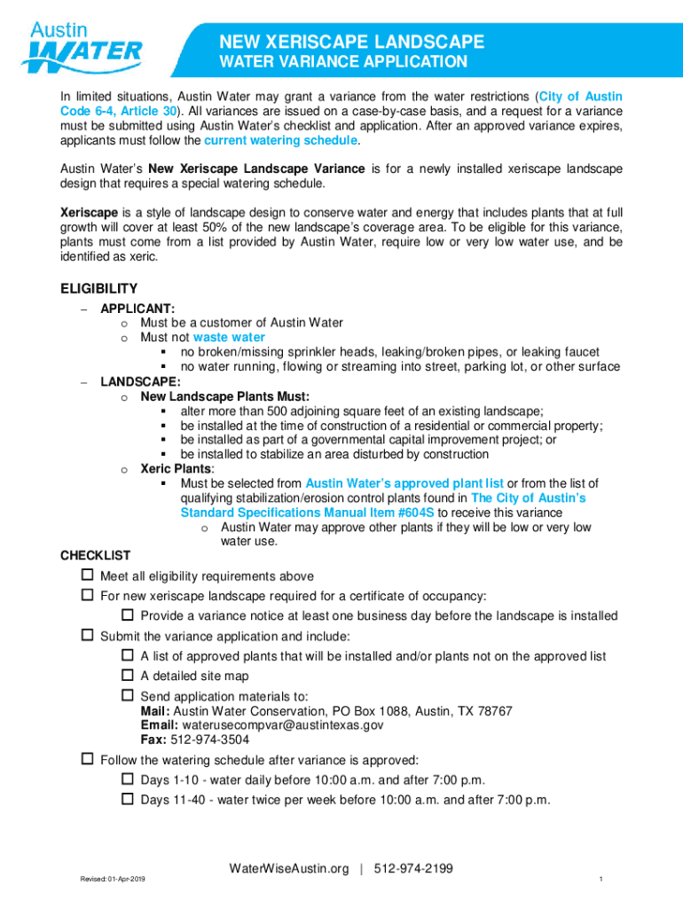 NEW PERISCOPE LANDSCAPE WATER VARIANCE APPLICATION In limited situations, Austin Water may grant a variance from the water restrictions (City of Austin Code 64, Article 30). All variances are issued