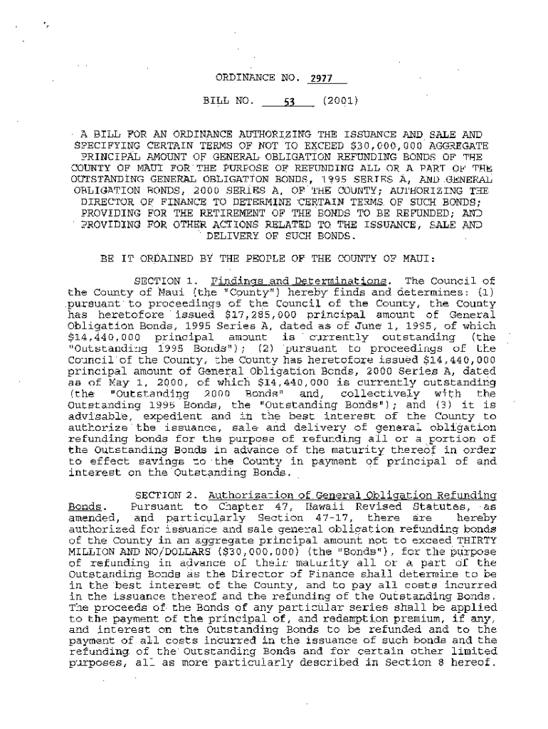 Get the free ORDINANCE NO. A BILL FOR AN ORDINANCE AUTHORIZING THE ISSUANCE OF ...