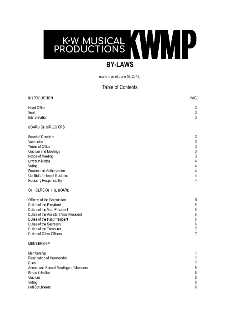 BYLAWS (current as of June 16, 2018)Table of Contents INTRODUCTION Head Office Seal Interpretational 3 3 3BOARD OF DIRECTORS Board of Directors Vacancies Terms of Office Quorum and Meetings Notice