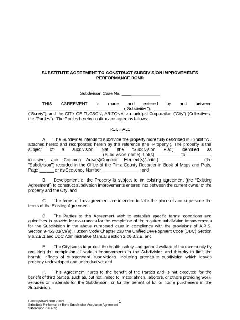 What is new.tucsonaz.govfilespdsdSubstitute Perance Bond Assurance Agreement - FINAL ... Form?