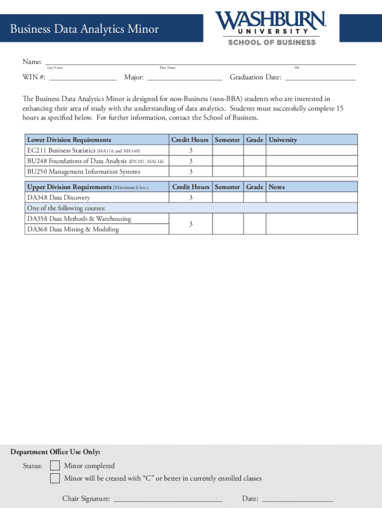 Business Data Analytics Minor Name: ___ Last NameFirst NameMIWIN #: ___Major: ___Graduation Date: ___The Business Data Analytics Minor is designed for business (nonBBA) students who are interested