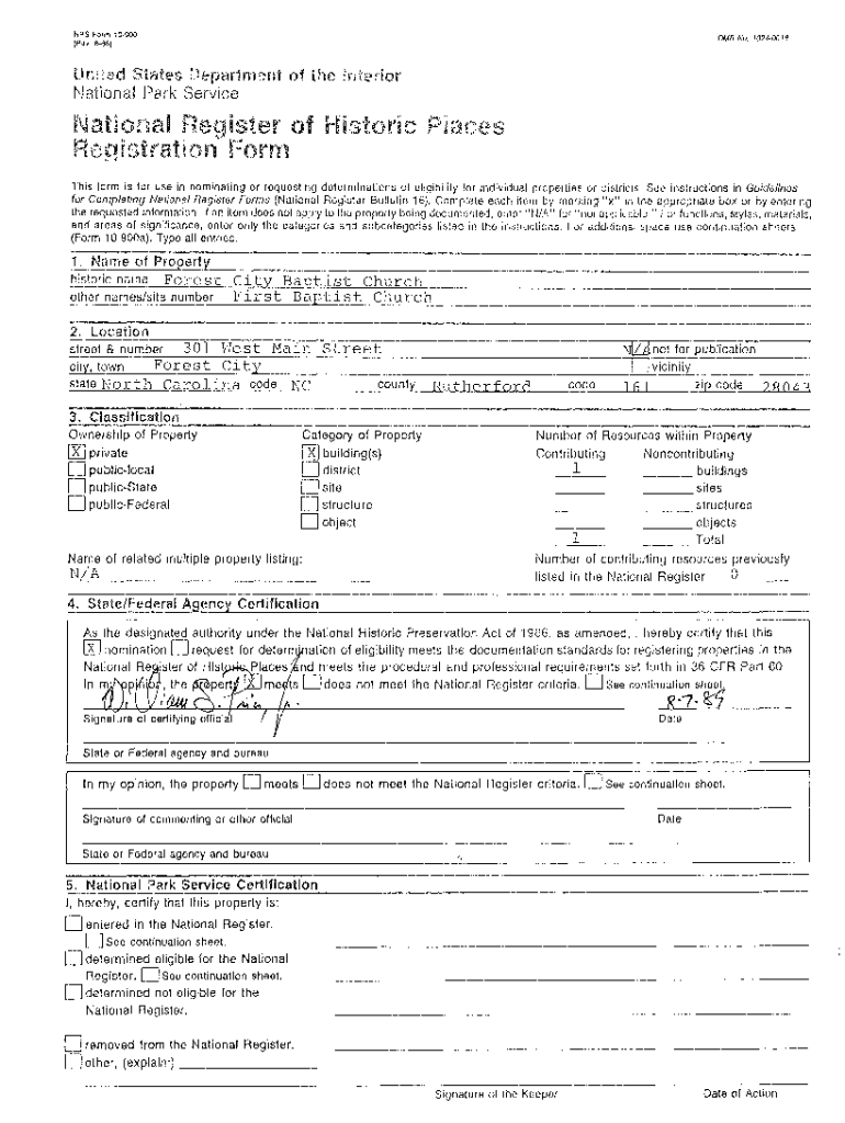 NPS Form 10000 (Roy, (86)OMB No, 10240018Uni National Park Services This form is for use in nominating or requesting determinations of eligibility for individual properties or districts. S:w instructions