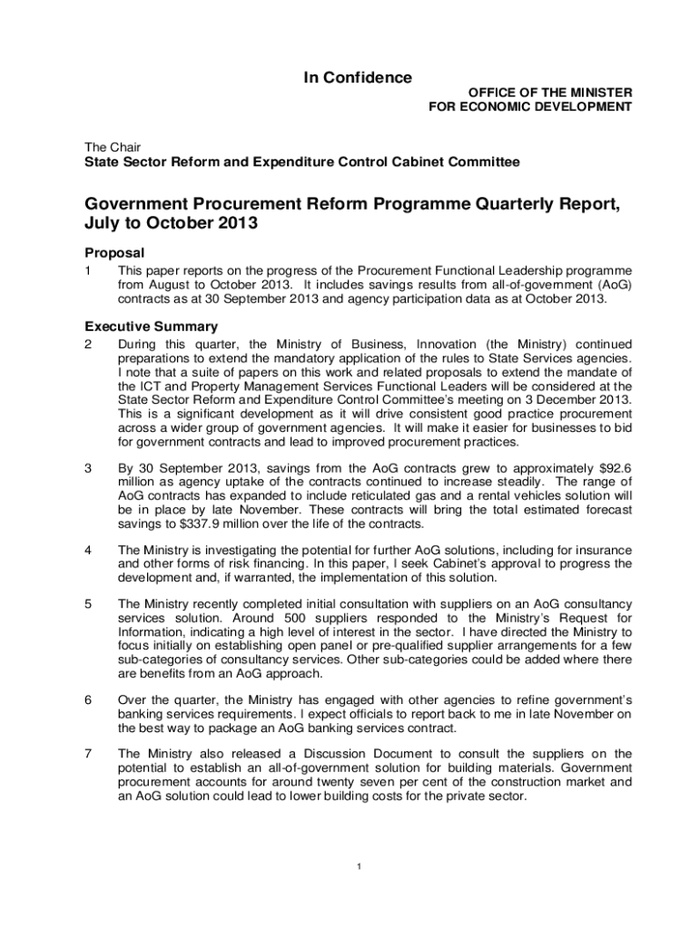 In Confidence OFFICE OF THE MINISTER FOR ECONOMIC DEVELOPMENT The Cheapskate Sector Reform and Expenditure Control Cabinet CommitteeGovernment Procurement Reform Program Quarterly Report, July to