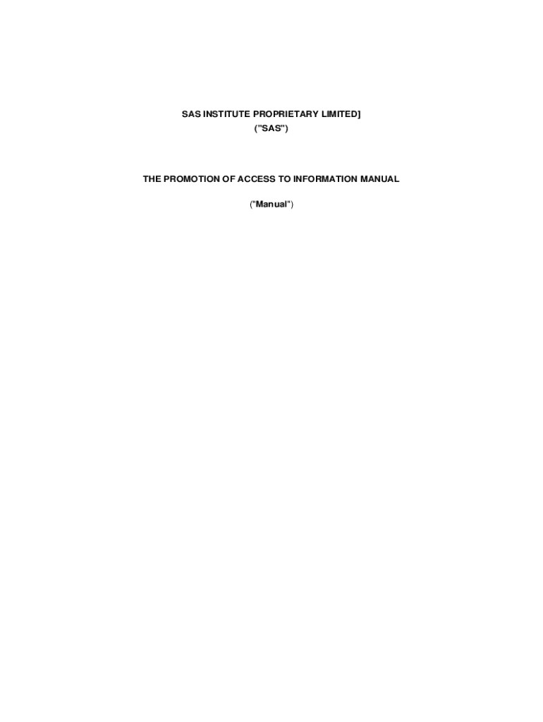 Get the free SAS PAIA Manual. SAS PAIA Manual - The Promotion of Access to Information Manual