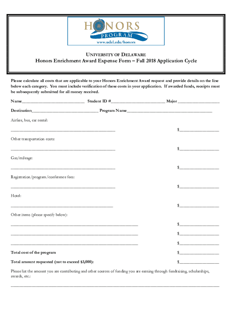 Get the free Honors Enrichment Award Expense Form Fall 2018 Application ... - sites udel