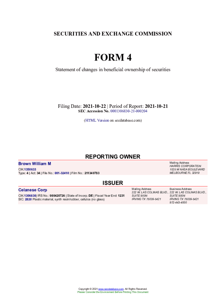 SECURITIES AND EXCHANGE COMMISSIONER 4 Statement of changes in beneficial ownership of securitiesFiling Date: 20211022 | Period of Report: 20211021 SEC Accession No. 000130683021000204 (HTML Version