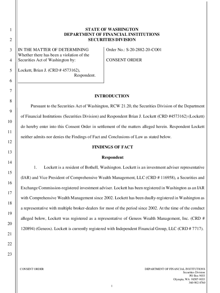 Get the free Brian Lockett - Consent Order - S-20-2882-20-CO01. Brian Lockett - Consent Order - S...