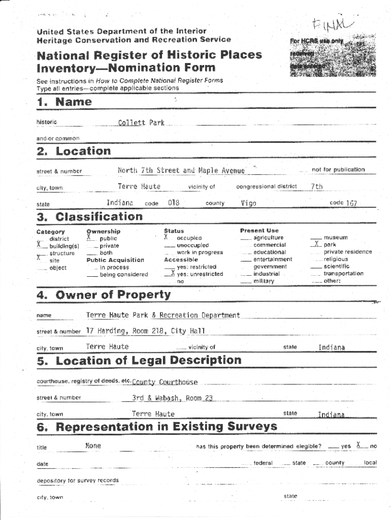 P reunited States Department of the Interior Heritage Conservation and Recreation ServiceHational Register of Historic PlaceslnventoryNomination Foresee instructions in How to Complete National Register