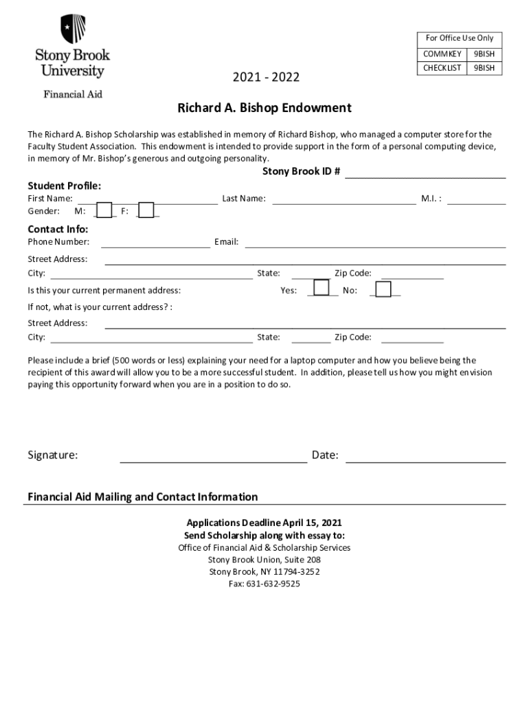 For Office Use Only COMMIE CHECKLIST2021 20229BISH 9BISHRichard A. Bishop Endowment The Richard A. Bishop Scholarship was established in memory of Richard Bishop, who managed a computer store for