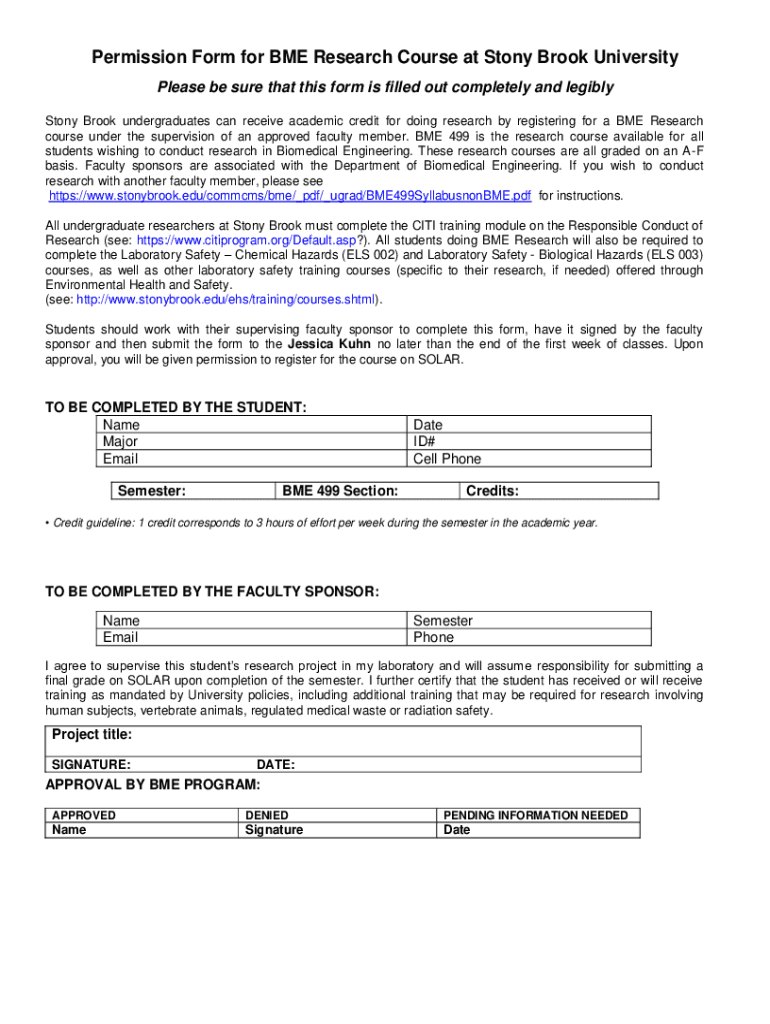 Get the free Permission Form for BME Research Course at Stony Brook ...