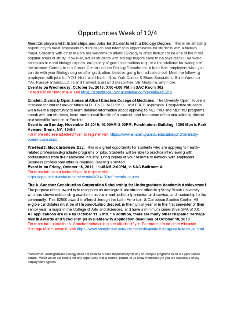 Opportunities Week of 10/4 Meet Employers with Internships and Jobs for Students with a Biology Degree: This is an amazing opportunity to meet employers to discuss job and internship opportunities