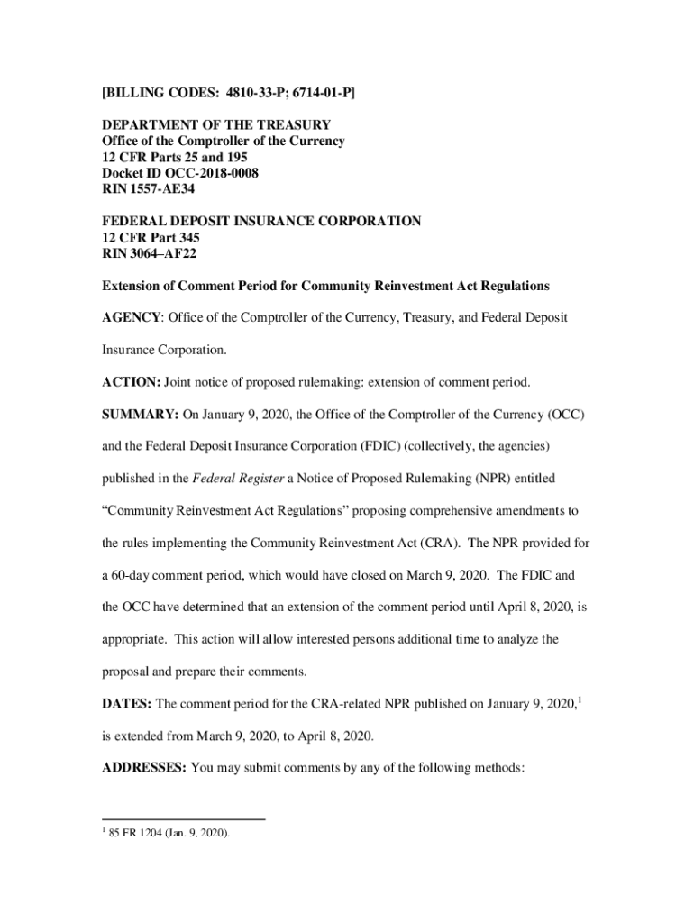 [BILLING CODES: 481033P; 671401P] DEPARTMENT OF THE TREASURY Office of the Comptroller of the Currency 12 CFR Parts 25 and 195 Docket ID OCC20180008 IN 1557AE34 FEDERAL DEPOSIT INSURANCE CORPORATION