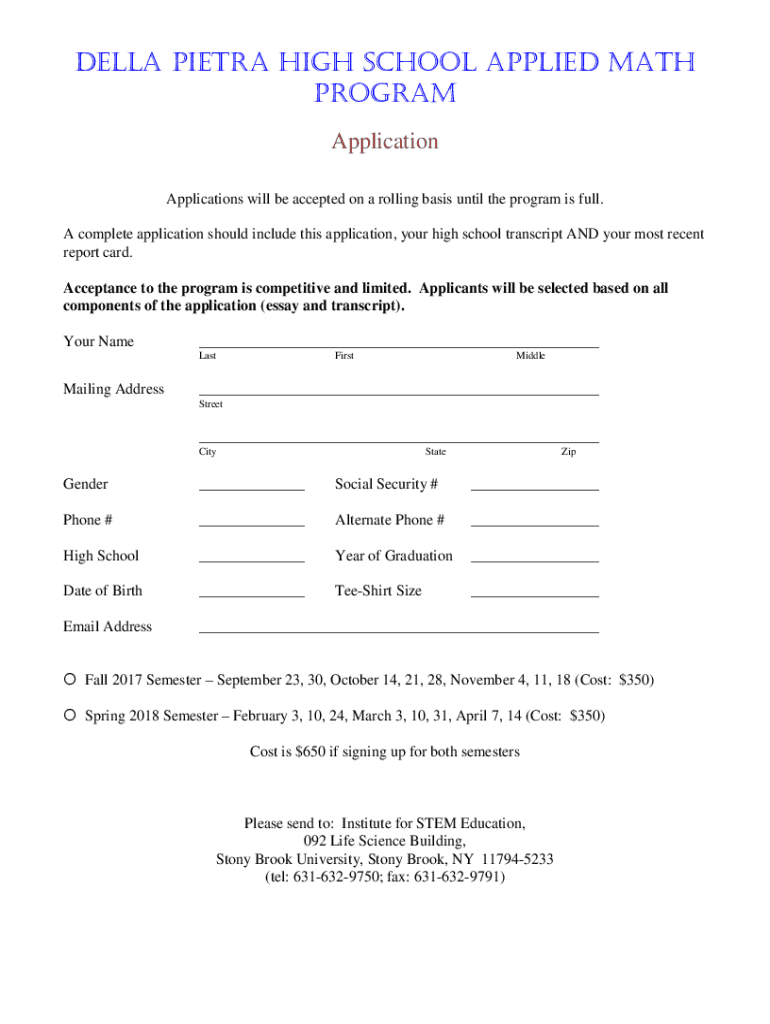Della Petra High School Applied Math Program Application Applications will be accepted on a rolling basis until the program is full. A complete application should include this application, your high