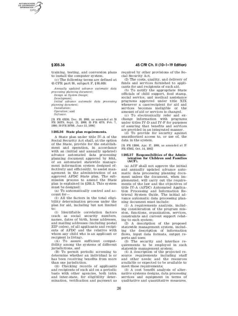 Get the free 45 CFR Ch. II (10119 Edition) 205.36