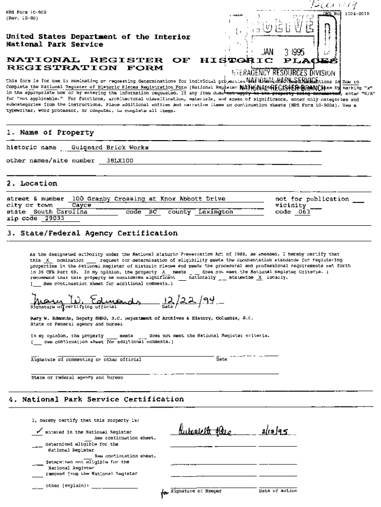 Get the free NPS Form 10-900 OMB No. 10244018 United States ... - National Park Service