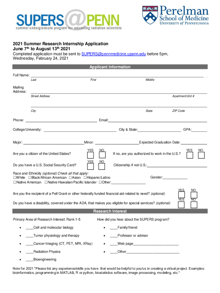 Completed application must be sent to SUPERS@pennmedicine.upenn.edu before 5pm,