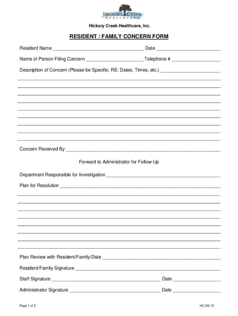 Get the free RESIDENT / FAMILY CONCERN FORM