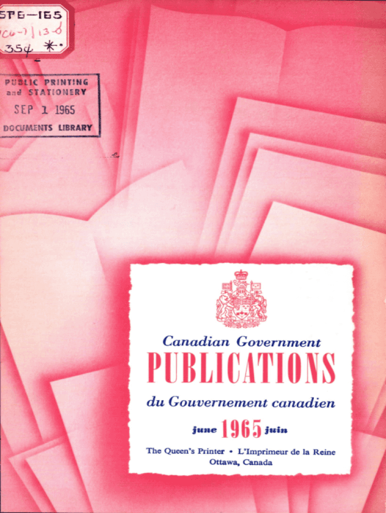 SE P 1 1965 DOCUMENTS LIBRARY., Canadian GovernmentPUBLIUATIONS du Government Canadian june19 65juinThe Queen\'s Printer L\'imprimatur DE la Race Ottawa, Canada. EY TO DISTRIBUTION SYMBOLS Sold by