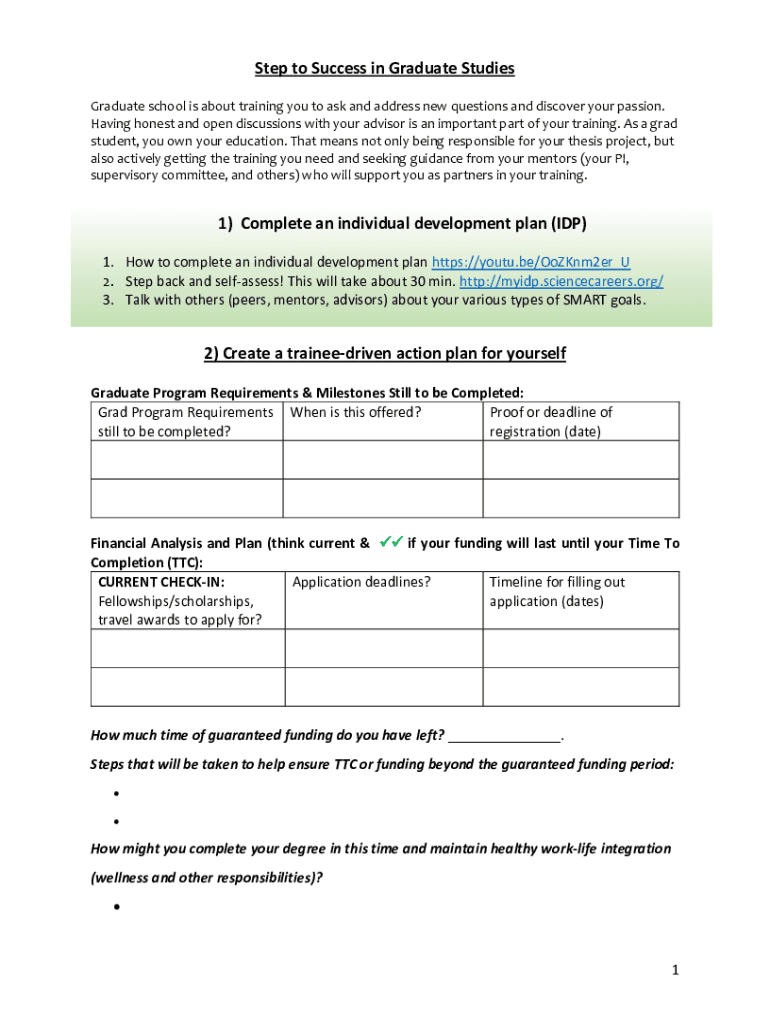 Step to Success in Graduate Studies Graduate school is about training you to ask and address new questions and discover your passion. Having honest and open discussions with your advisor is an important