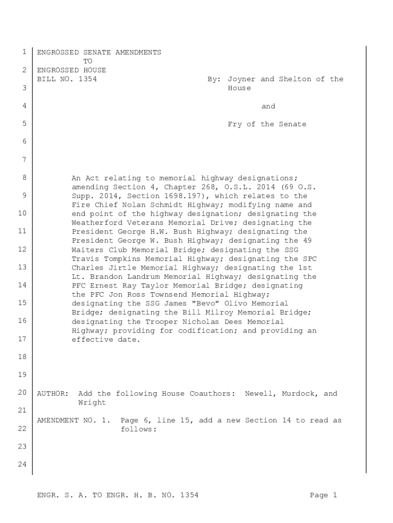 Get the free ENGR. S. A. TO ENGR. H. B. NO. 1354 Page 1 1 2 3 4 5 6 7 8 9 10 ...