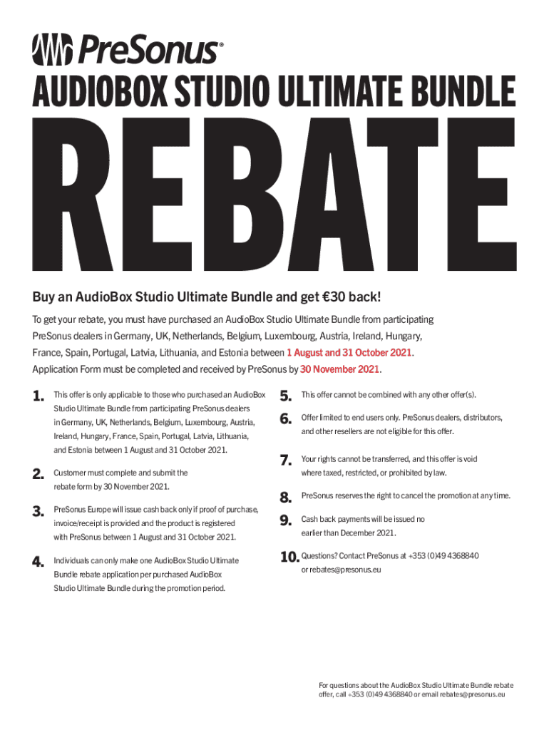 Get the free audioboxstudioultimate-rebate-form.indd